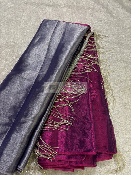 Gyana Wine Cotton Tissue Saree