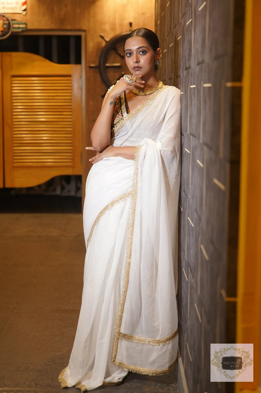 Rooh White Mulmul Saree