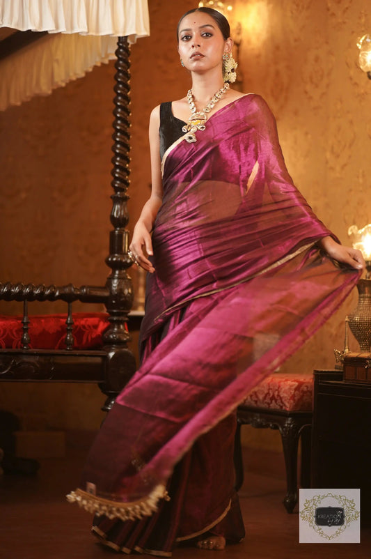 Gyana Wine Cotton Tissue Saree