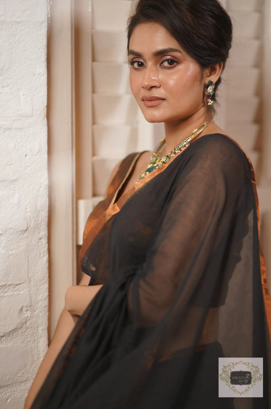 Black Beauty Mulmul Saree