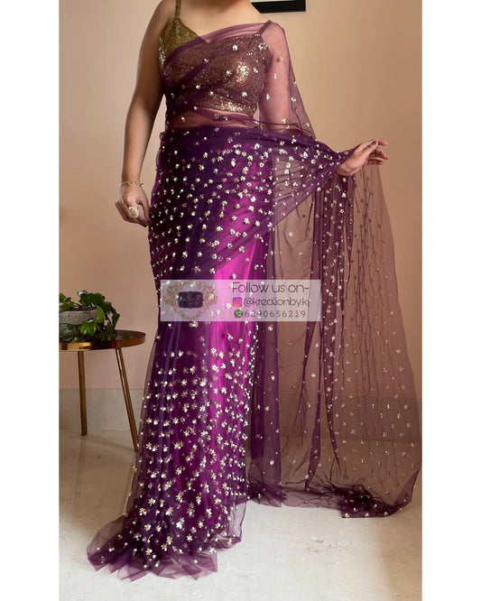 Step into regal charm with our heritage tikki and sequin Handembroidery work...