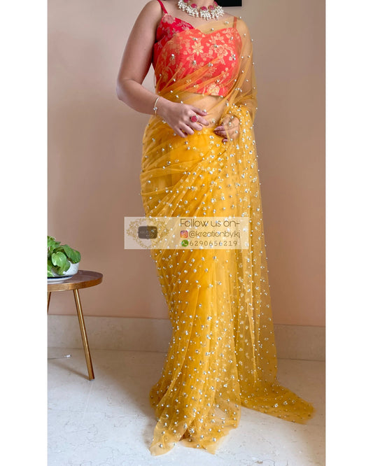 Save 22%Jugnoo Yellow Net Saree For Haldi