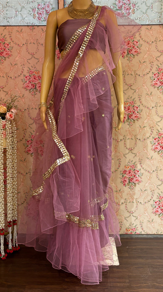 Baby's Breath Pink Net Girlish Looking Partywear Saree
