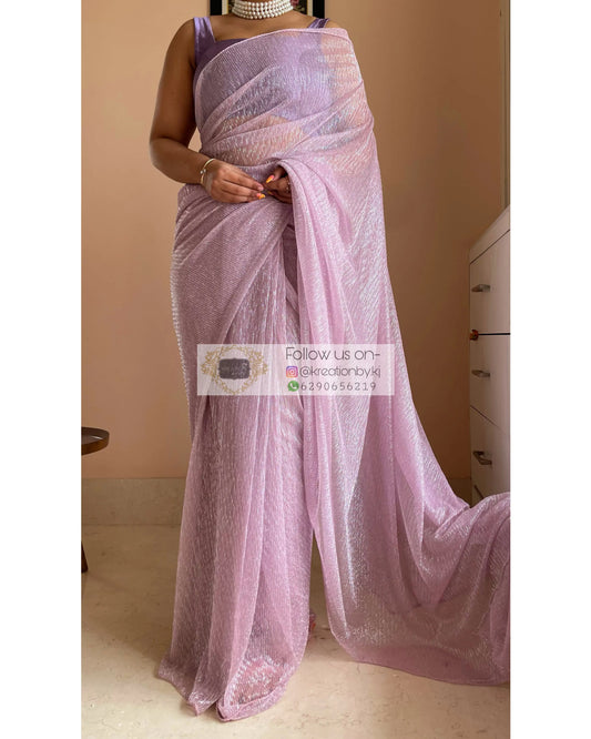 Lilac Shimmer Pleated Net Saree For Romantic Date