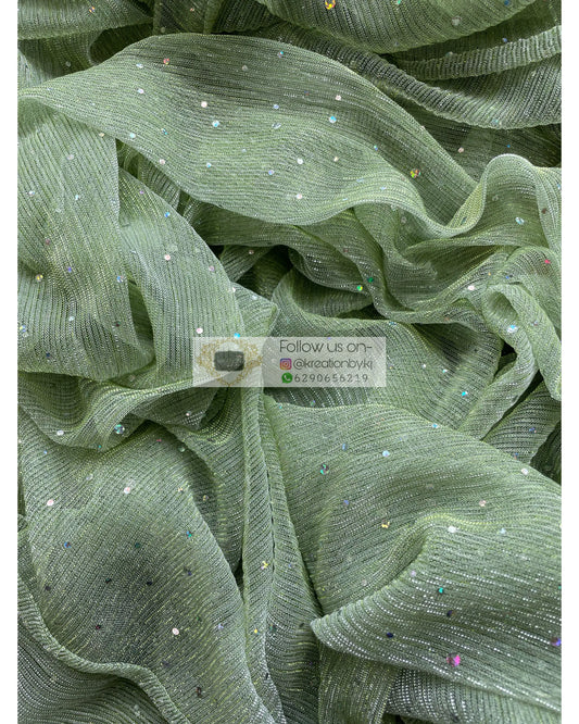 Pastel Green Pleated Shimmer Saree for 1st Date