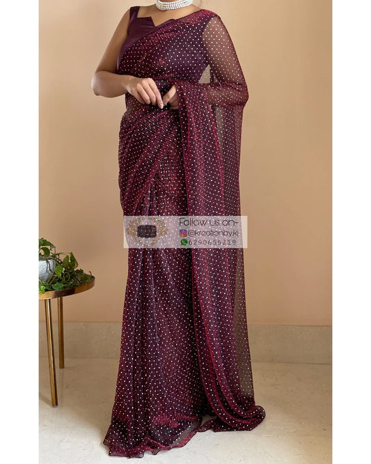 Save 21%Maroon Wine Pleated Shimmer Saree