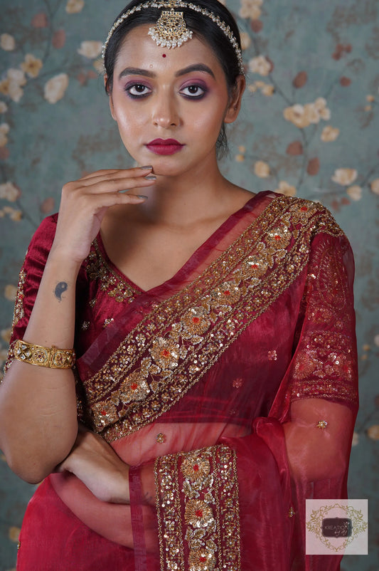 Save 15%Burgundy Velvet Prajoti Saree