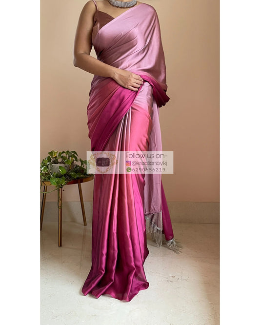 Pink Panther Georgette Ombré Saree with Handmade Tassels on Pallu