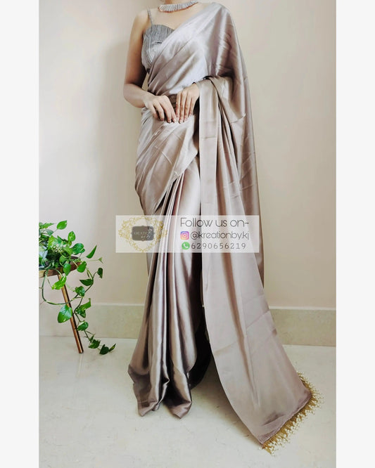 Mink Satin Silk Saree With Handmade Tassels On Pallu