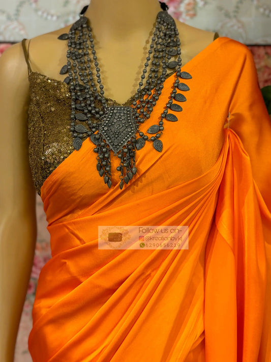 Metallic Satin Saree for Party, Cocktail, Bridesmaids Elegant Shine Meets Effortless FlowMake...