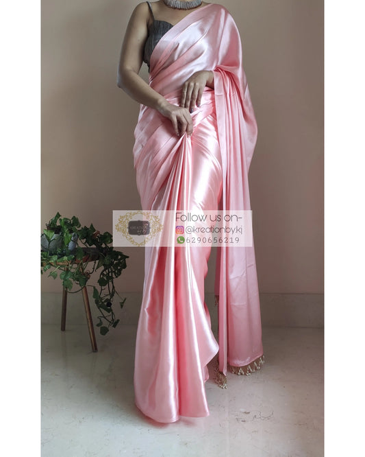 Petal Whisper Pink Satin Silk Cocktail Saree