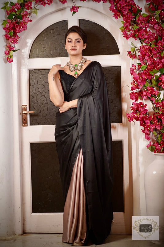 Twilight Satin Silk Cocktail Saree with handmade tassels on pallu