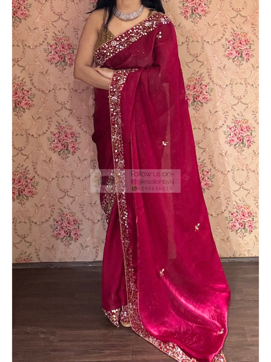 Save 24%Red Glass Tissue Sheesh Mahal Saree