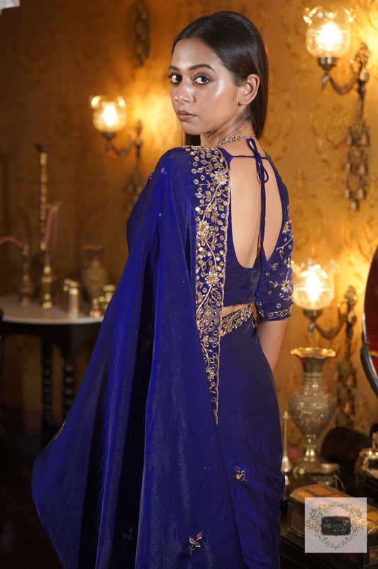 Royal Blue Sheesh Mahal Saree with Mirror Work