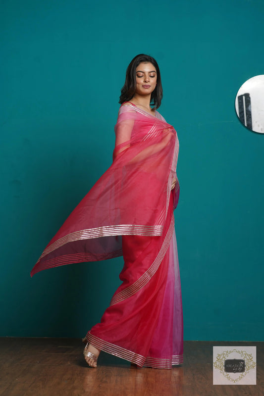 Sicilian Sunset Ombré Silver lining Saree With Gota Patti Handwork