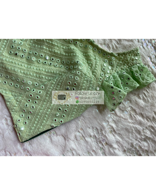 Green Sheesh Mirror Work Sleeveless Cocktail Blouse