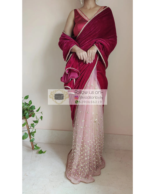 Save 20%Maroon Velvet Badan pe Sitare Saree