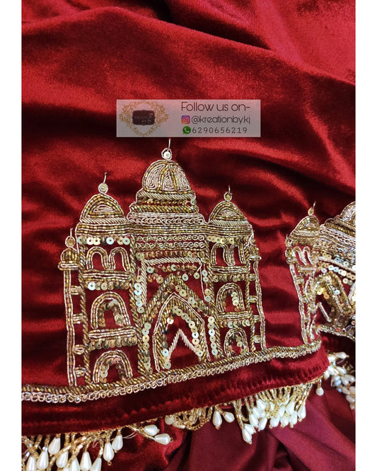 Step into regal charm with our heritage tikki and sequin Handembroidery work...
