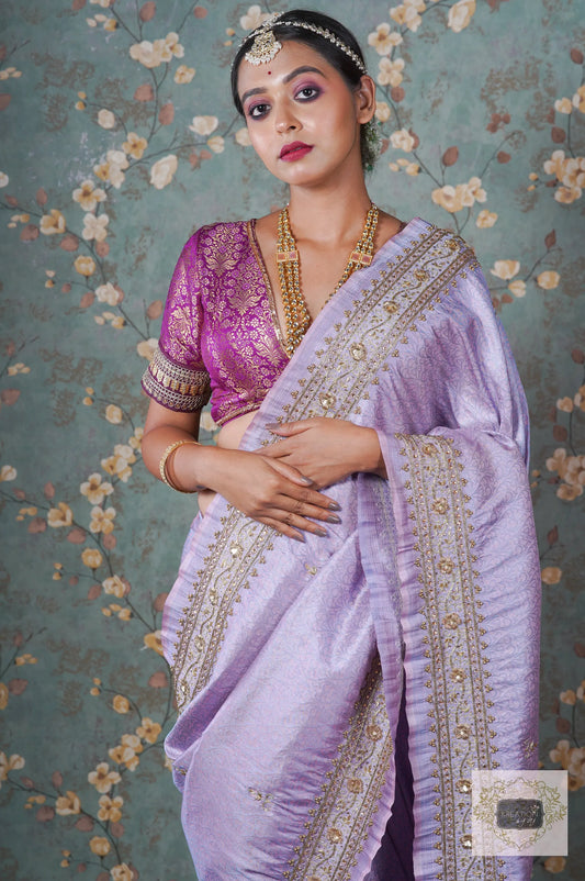 Sold outLavender Banarasi Zarina Saree