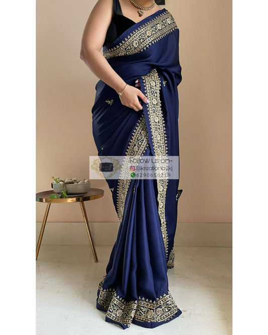Save 19%Navy Blue Crepe Silk Zarina Saree