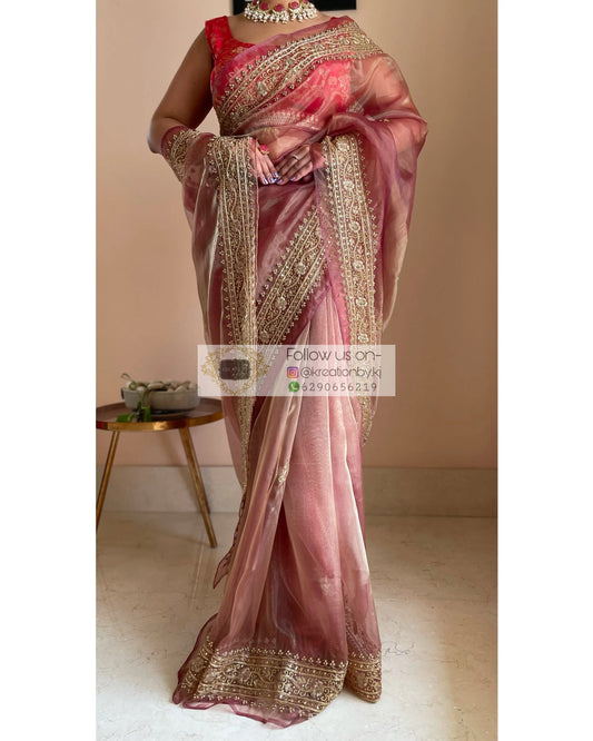 Nazakat Copper Glass Tissue Saree For Wedding