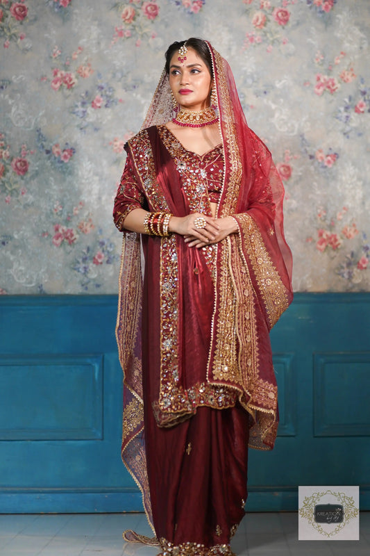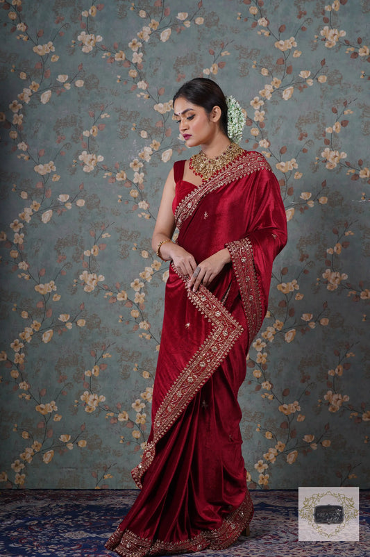 Maroon Velvet Zarina Saree-Wedding Sarees, Bridal Fashion