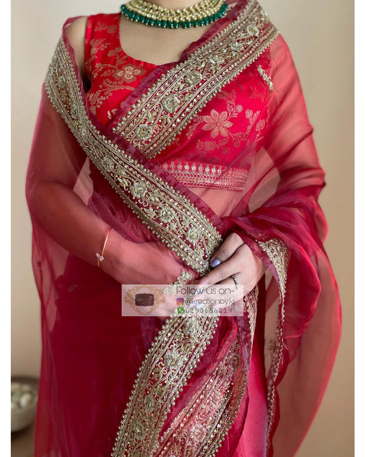 Red Glass Tissue Zarina Bridal Handembroidered Veil