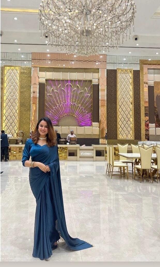 Cobalt Blue Satin Silk Saree With Handmade Tassels On Pallu