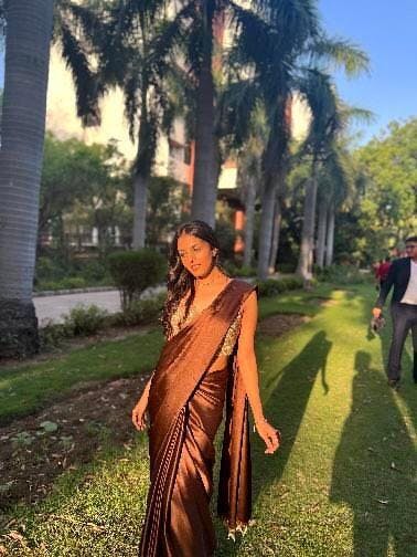 Im still getting so much comments for my look that i made by your saree thank you again for such a beautiful saree guyz ❤️ still not over it 😭 wanna wear it on my every special occasion. I have shared your page with many of my friends..hope u get more and more and more orders 🎉 can't explain my happiness and confidence i gained from wearing this saree as my first saree thank you ❤️