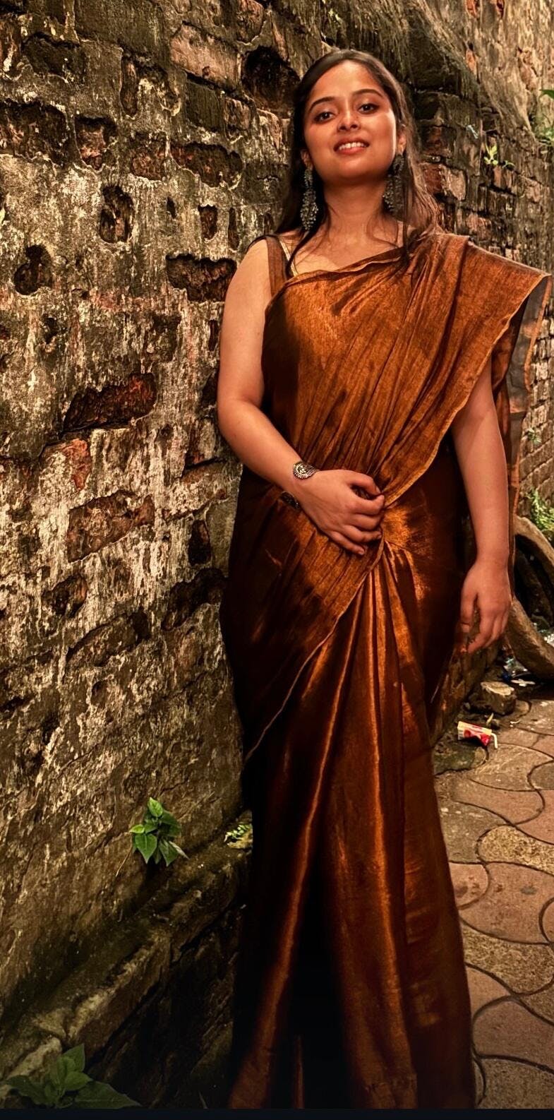 Maya Copper Brown Cotton Tissue Saree