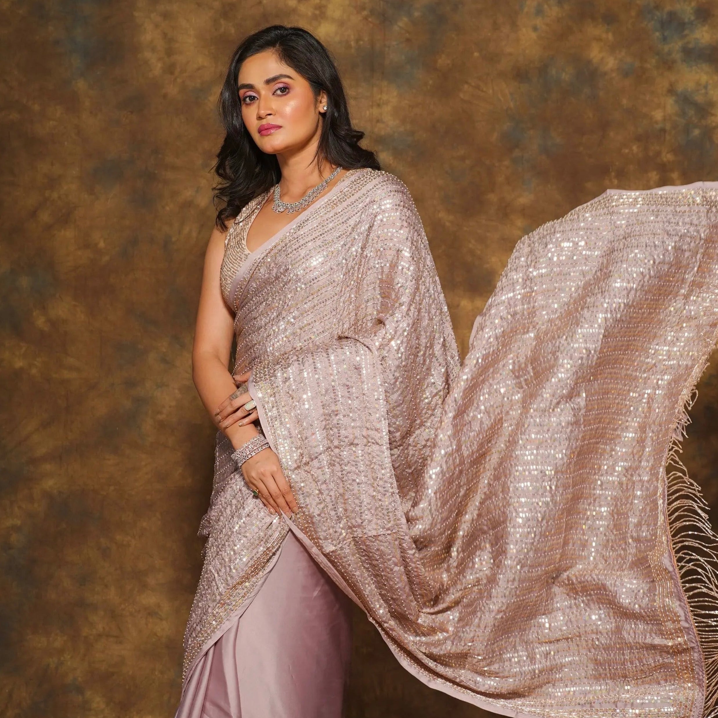 Borders: Intricately embroidered using the finest golden Zardozi and sequins.