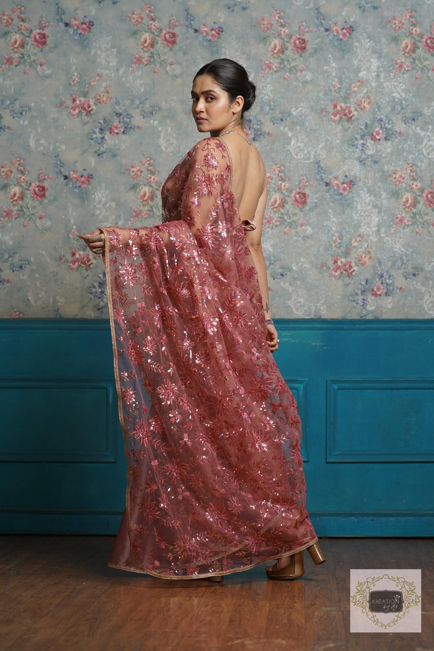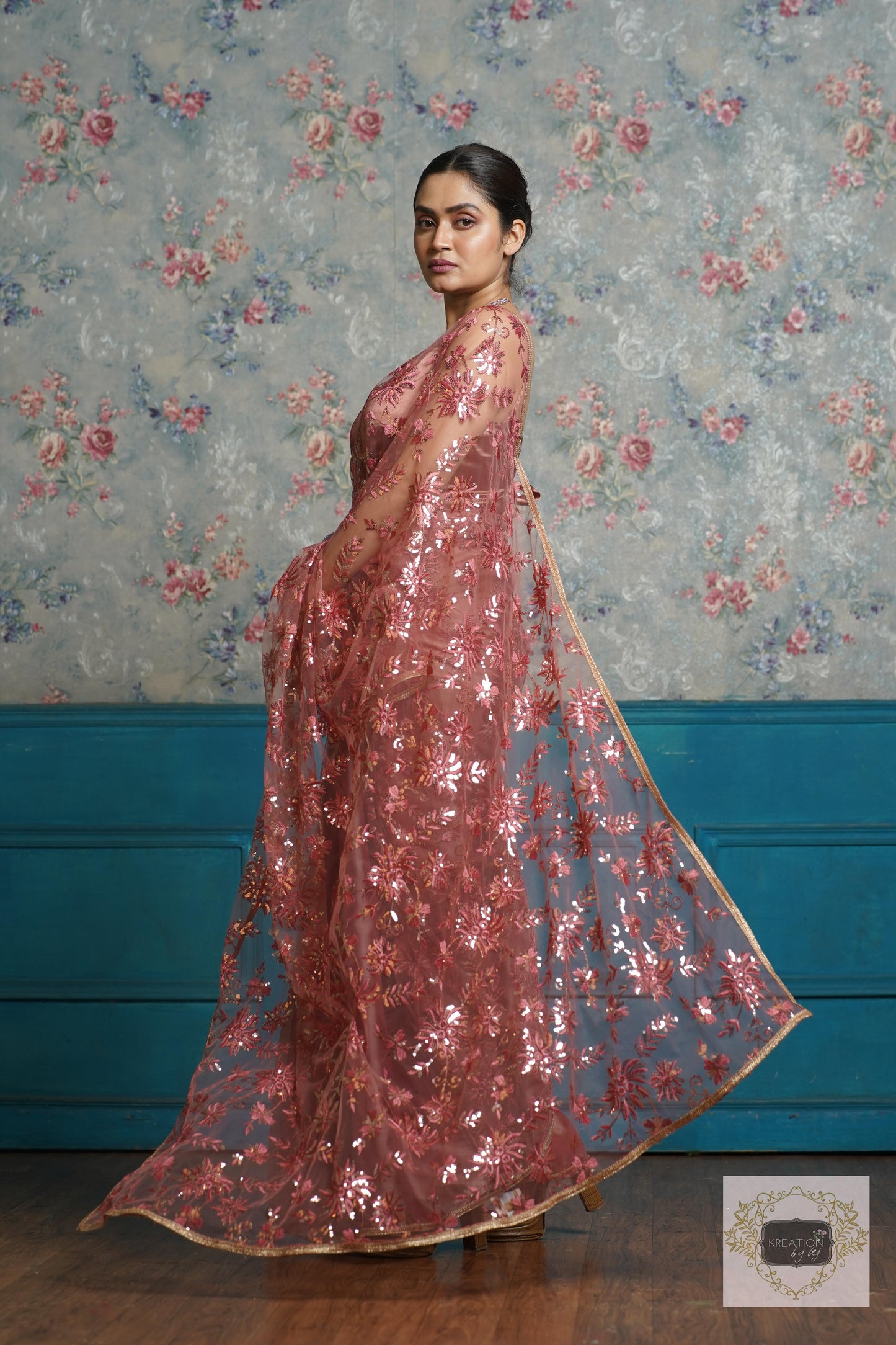 Dusty Rose Morning Glory Organza Half saree for Cultural Parties with a Modern Dress Code