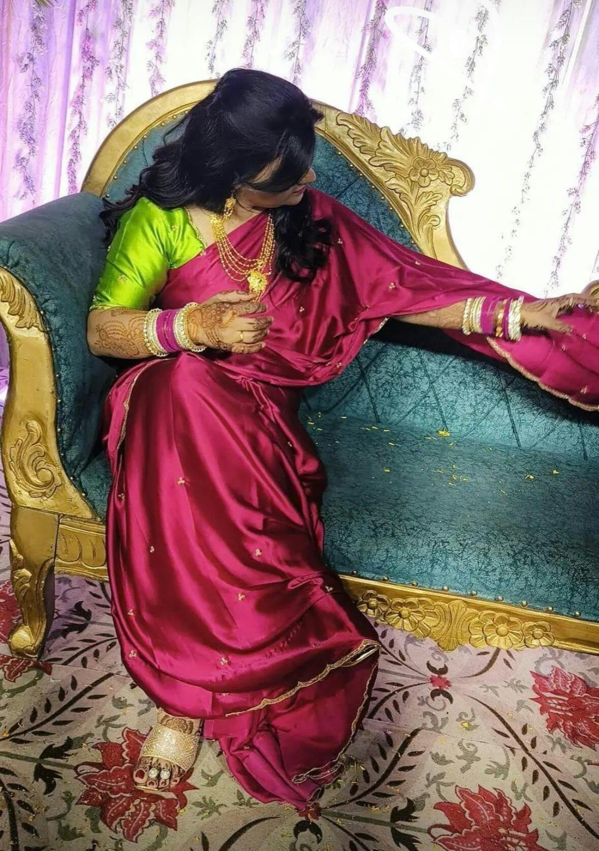 Hot Pink Satin Silk Saree With Handembroidered Scalloping
