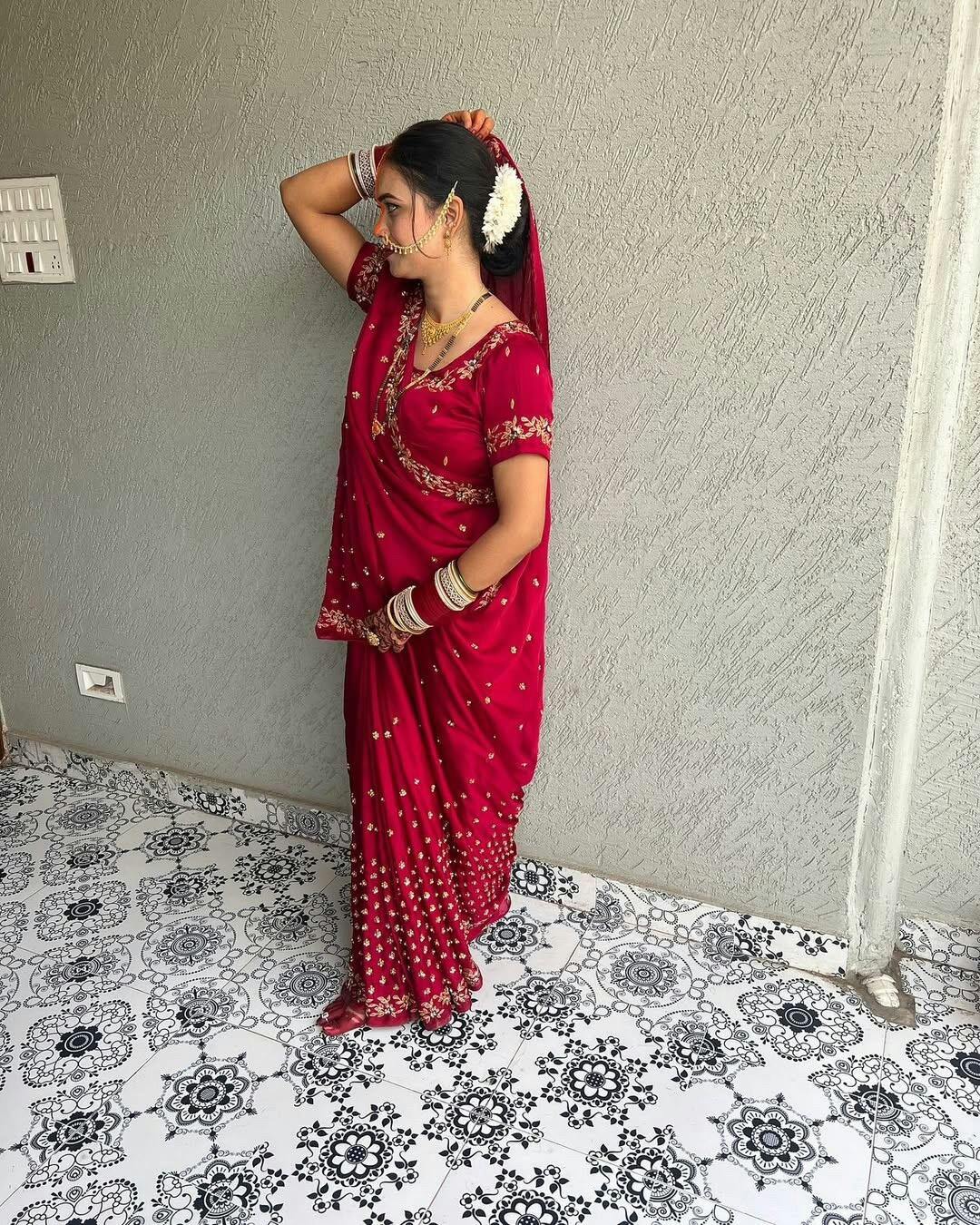 Maroon Crepe Silk Badan pe Sitare Wedding Saree