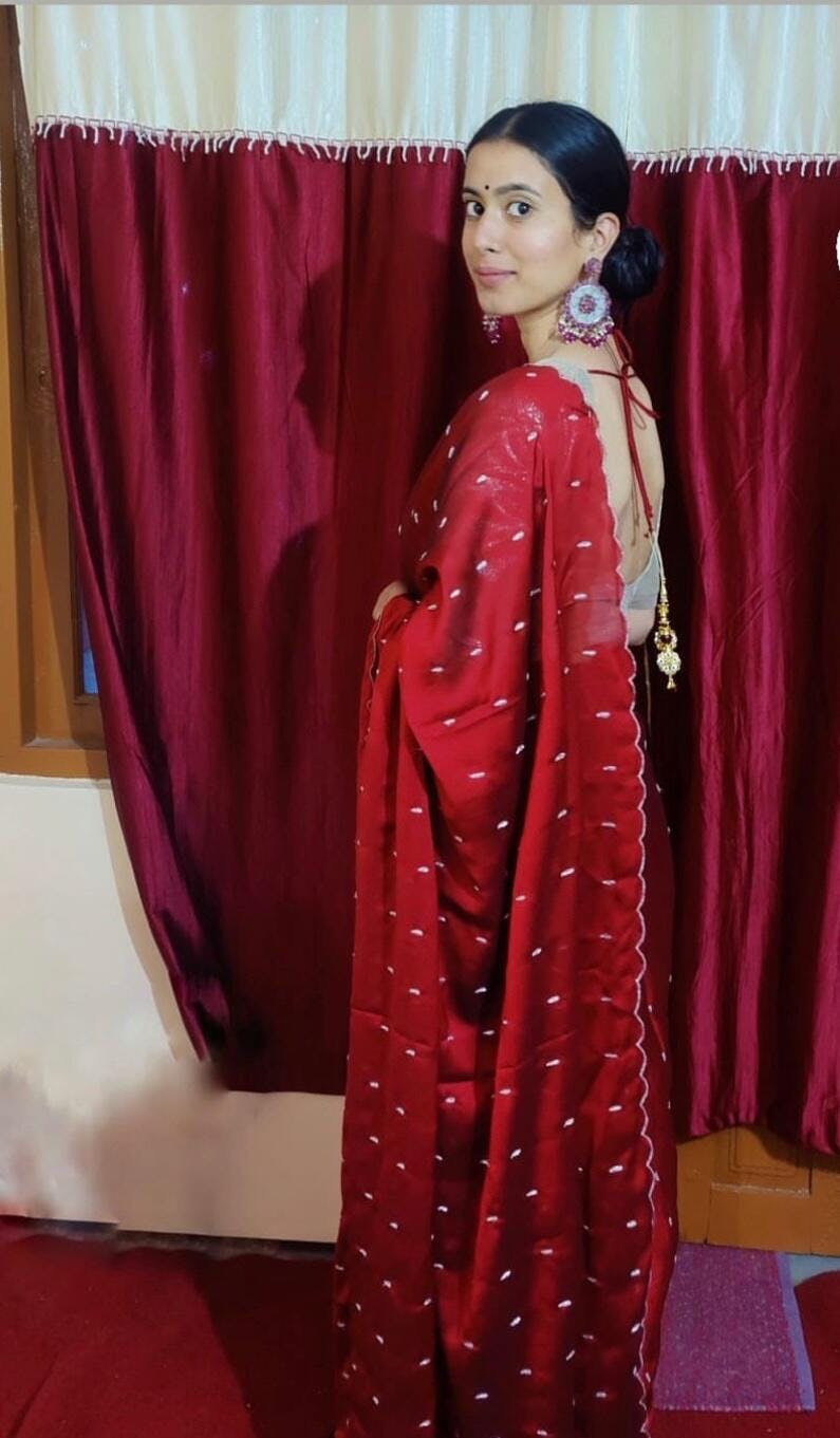 Maroon Crepe Silk Saree With Zardosi Dabka Motifs