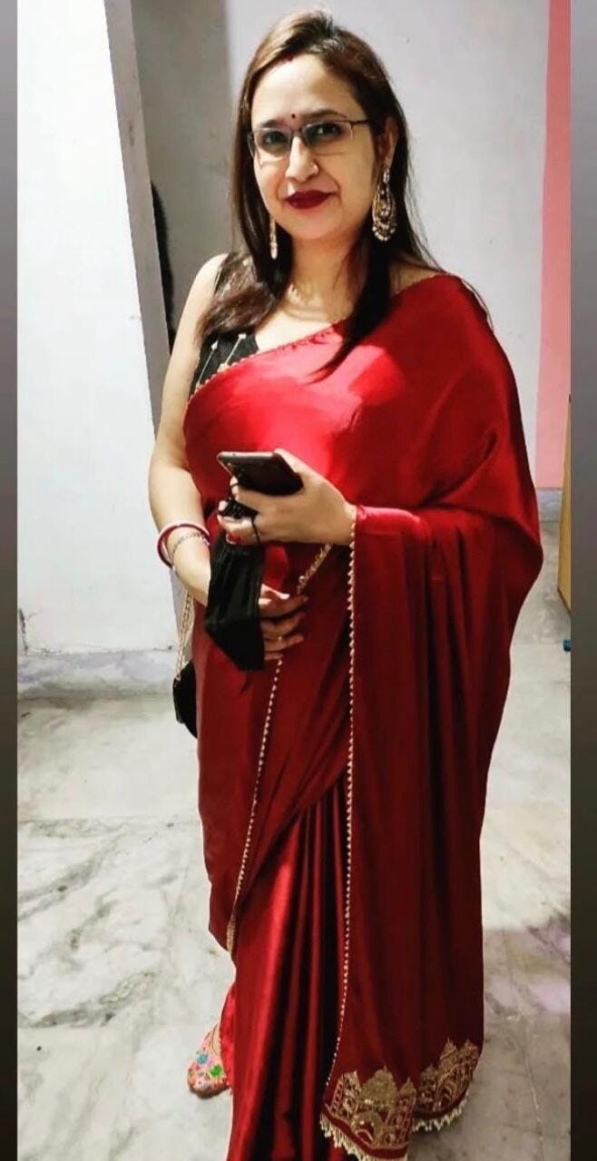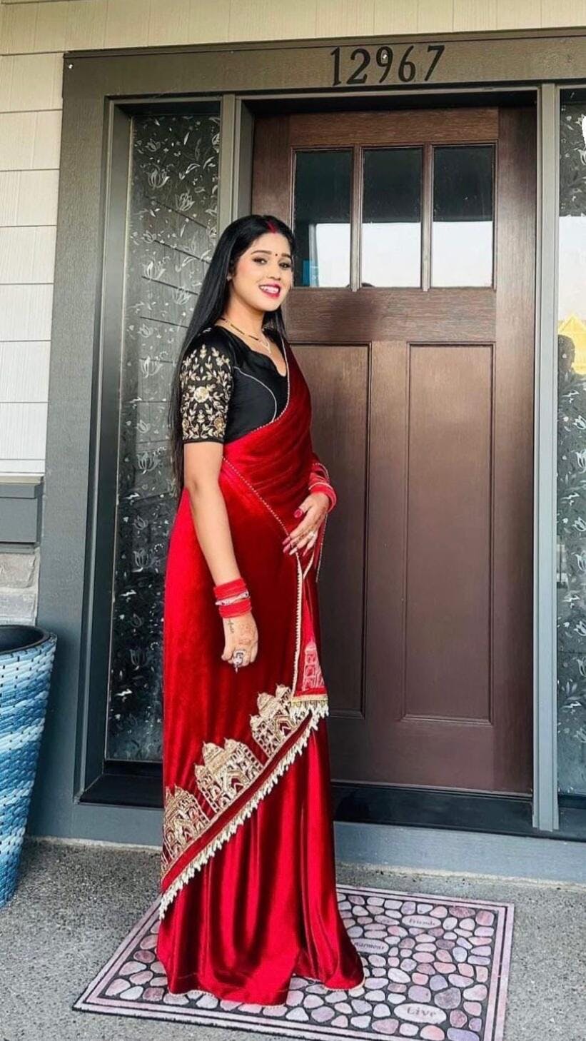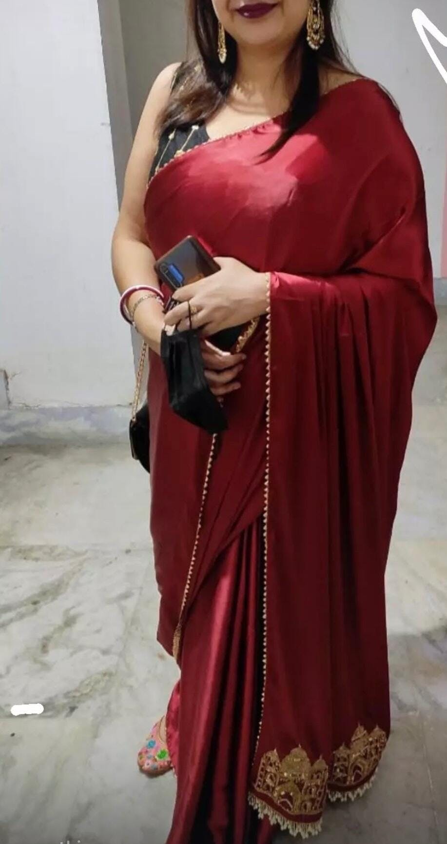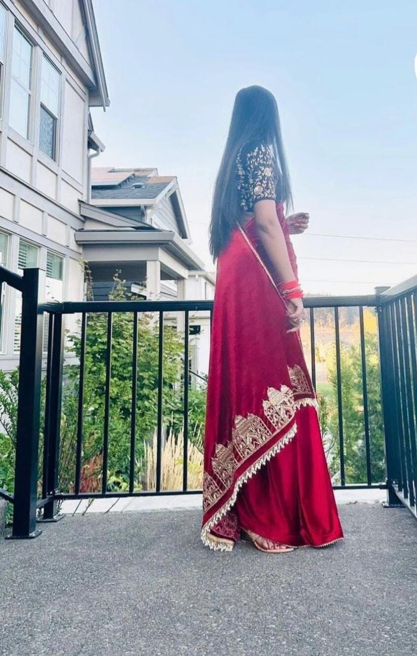 Maroon Velvet Zardosi Embroidered Saree With Blouse