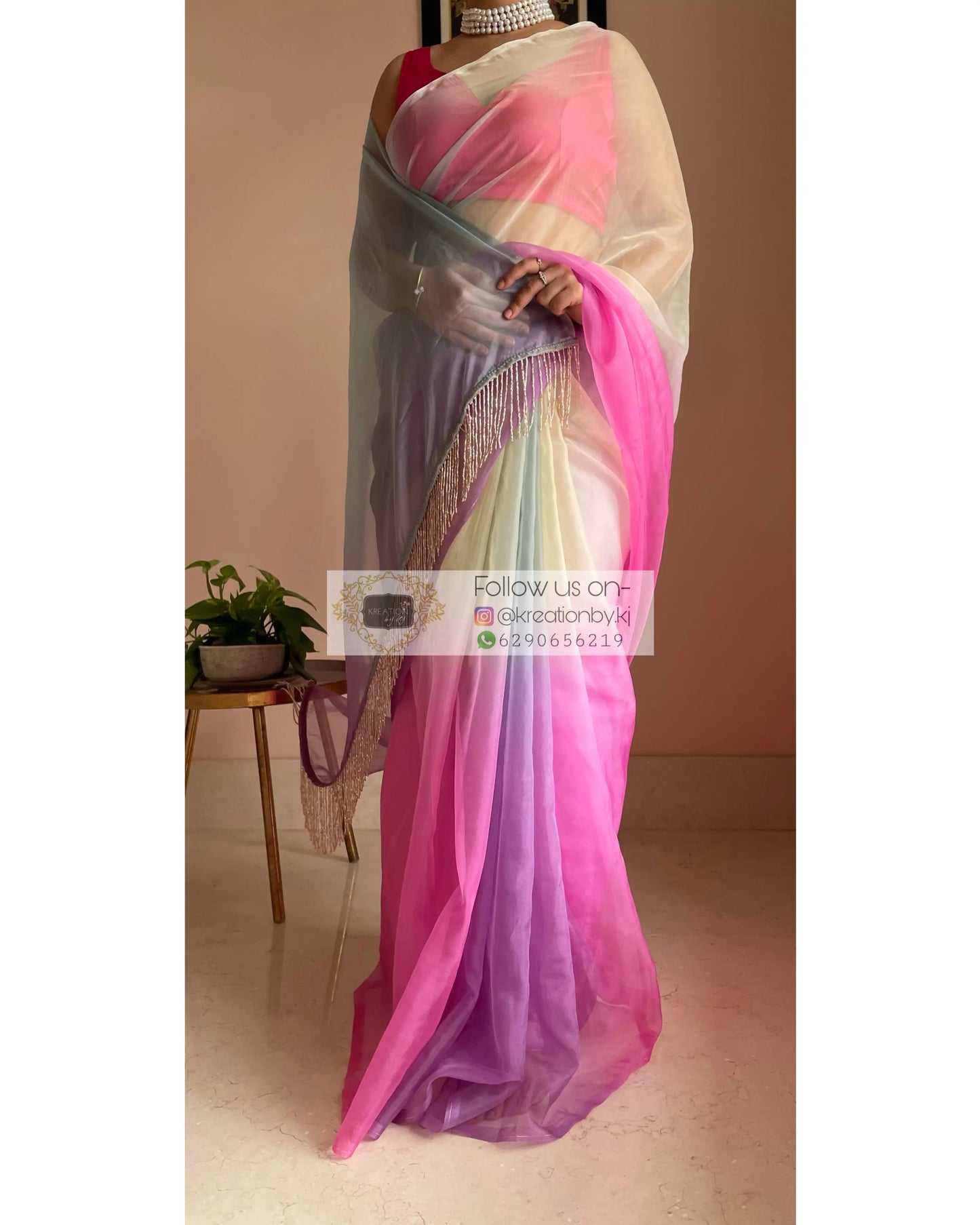 Marshmallow Martini Ombré Organza Saree for Farewell