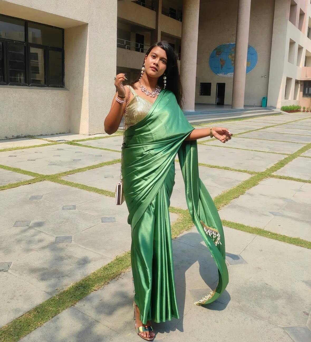 Stylish Satin Saree – Soft, Shiny & Elegant for Farewell, Parties, Bridesmaids