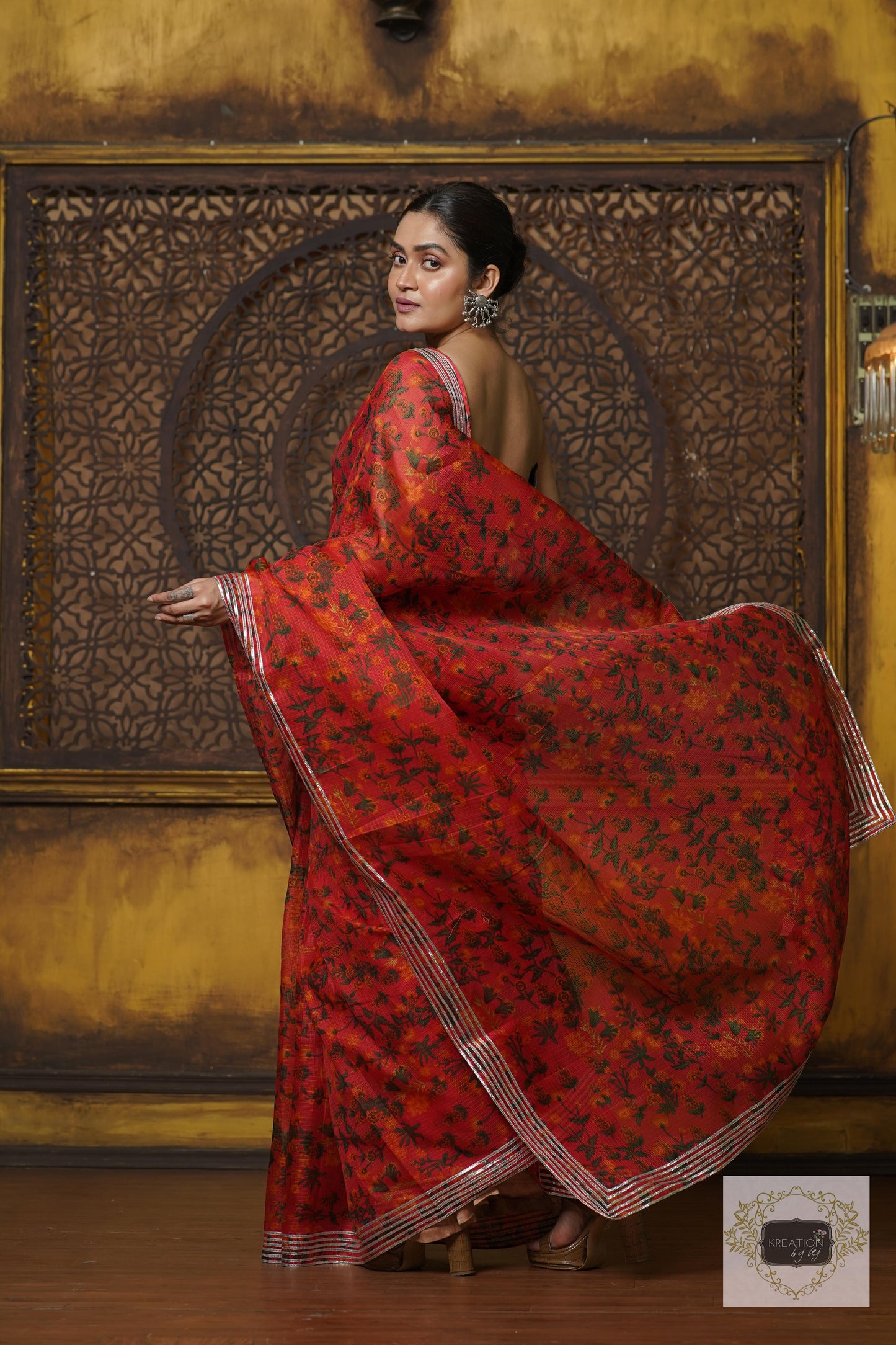 Discover timeless beauty with our Kota saree adorned with authentic Rajasthani Gota Patti work. Perfect for weddings, festive occasions, and traditional celebrations. Handcrafted elegance meets modern style.