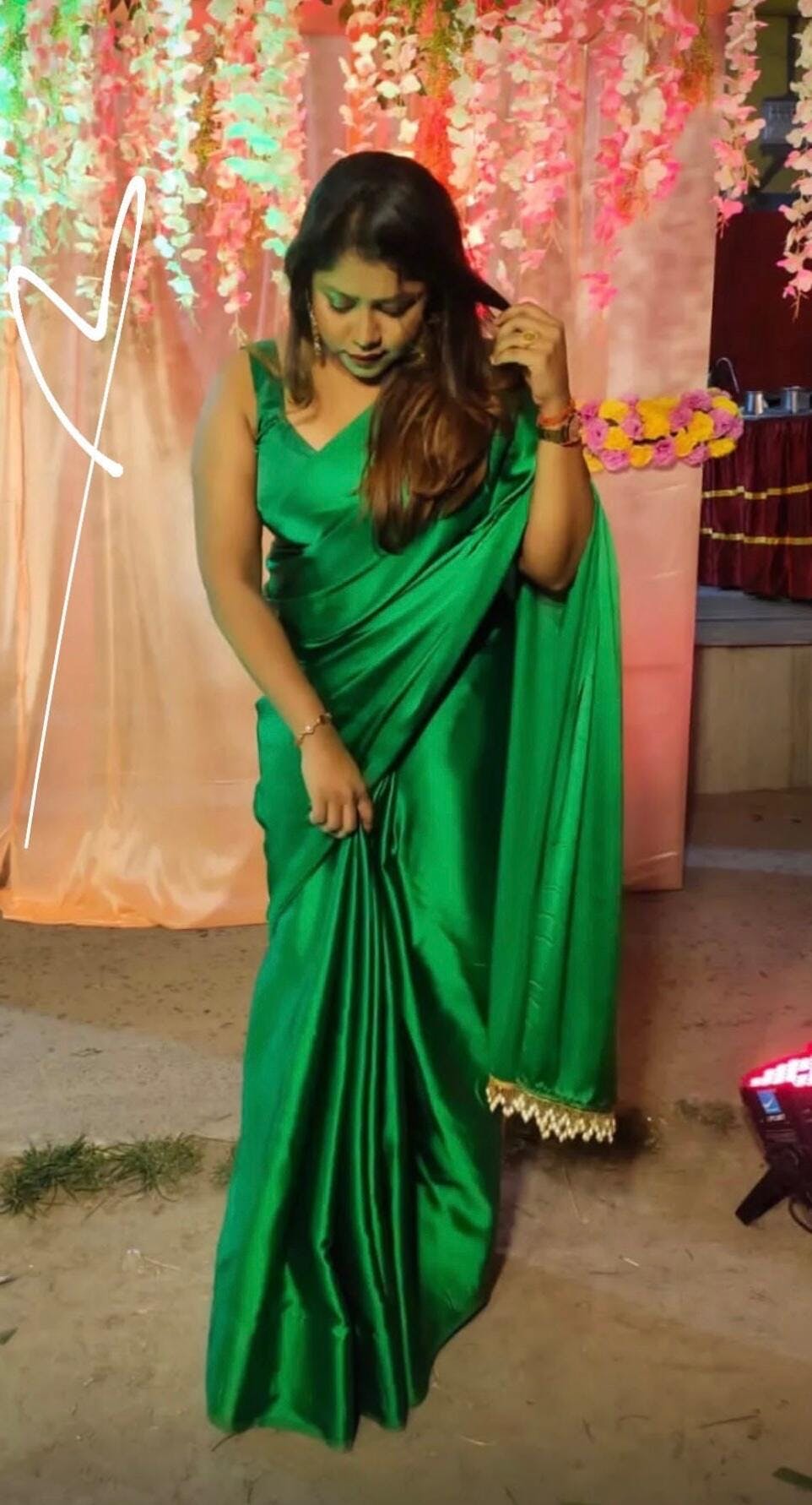 Unleash your inner diva with this Soft & Shiny Satin Saree, designed to flow like a dream and shiny with every step. Inspired by iconic Bollywood fashion, this plain satin saree brings effortless glamour to any occasion — from a college farewell or office party to bridesmaid duties and even a pre-bridal shoot.