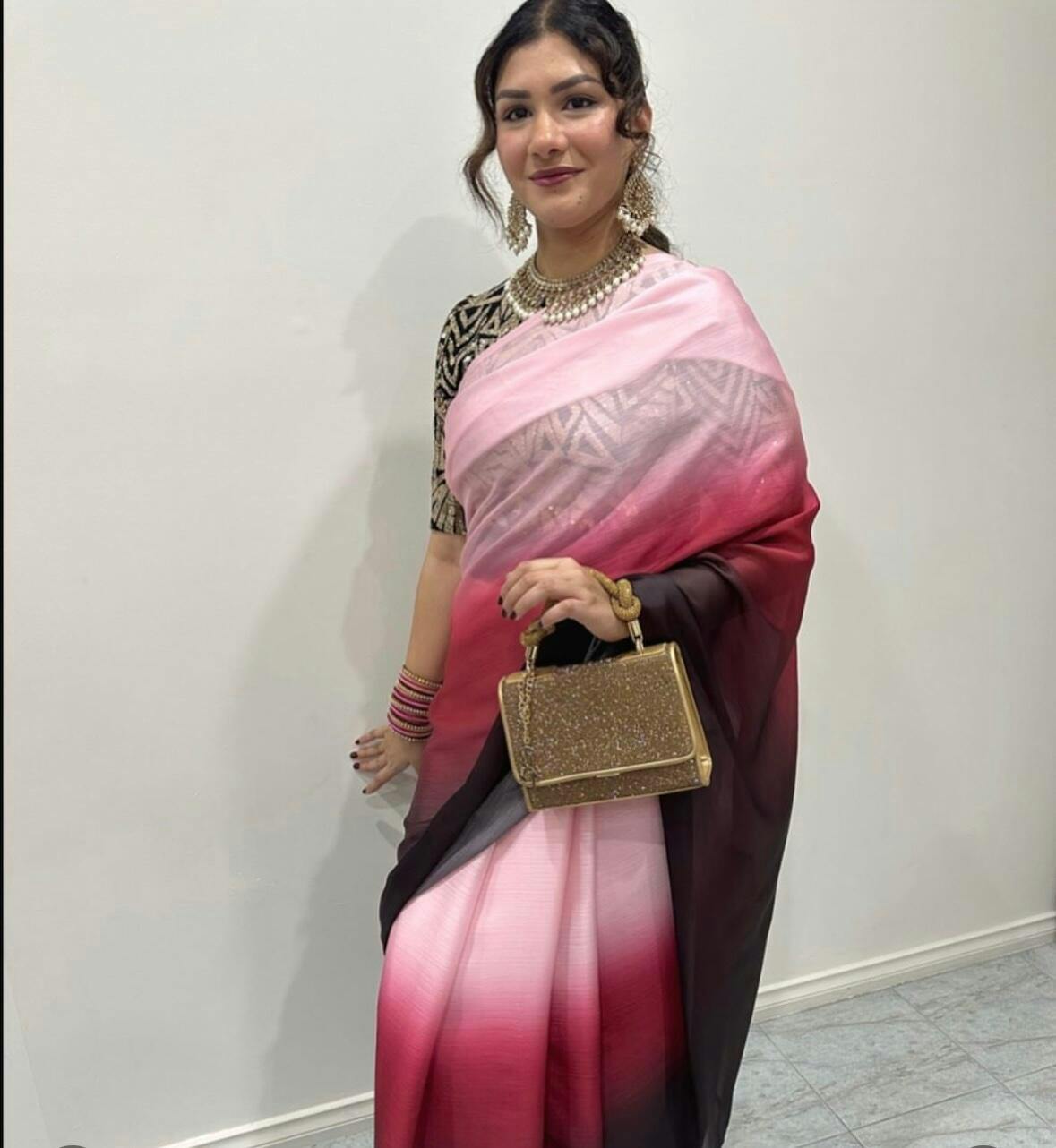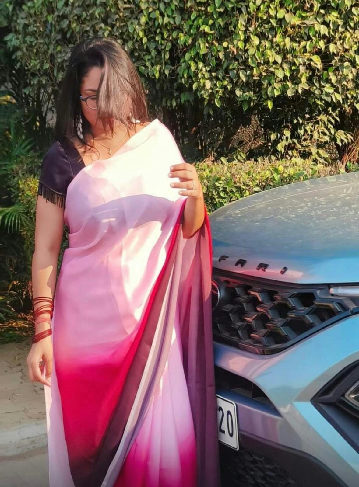 Discover the exquisite Pink Ombré Crepe Silk Saree, crafted for a graceful drape and soft texture. Perfect for festive occasions and stylish events, this saree blends tradition with contemporary elegance. Shop now for premium quality and unique design.