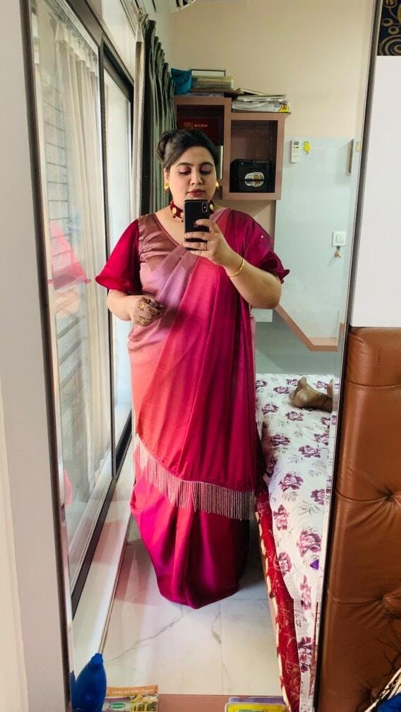 Rose Gold and Wine Two Tone Ombre Saree