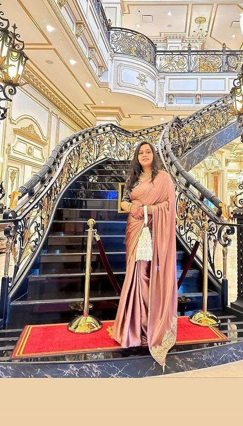 Elevate your elegance with the Rose Gold Satin Silk Taj Mahal Saree, crafted from luxurious satin silk that drapes gracefully. Its subtle rose gold hue complements intricate design details inspired by the Taj Mahal, offering a timeless blend of tradition and sophistication. Perfect for special occasions, this saree ensures a refined silhouette and lasting comfort.