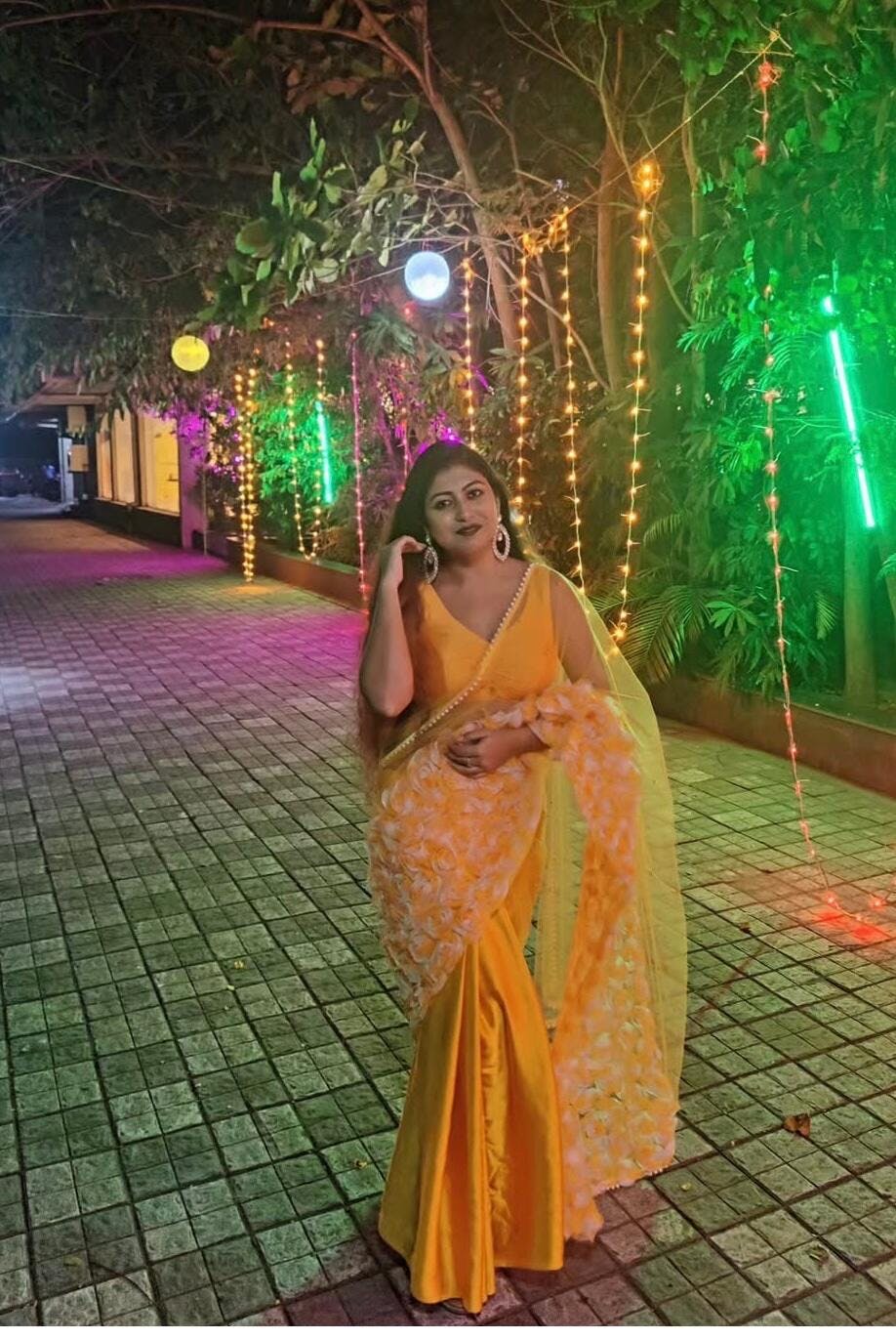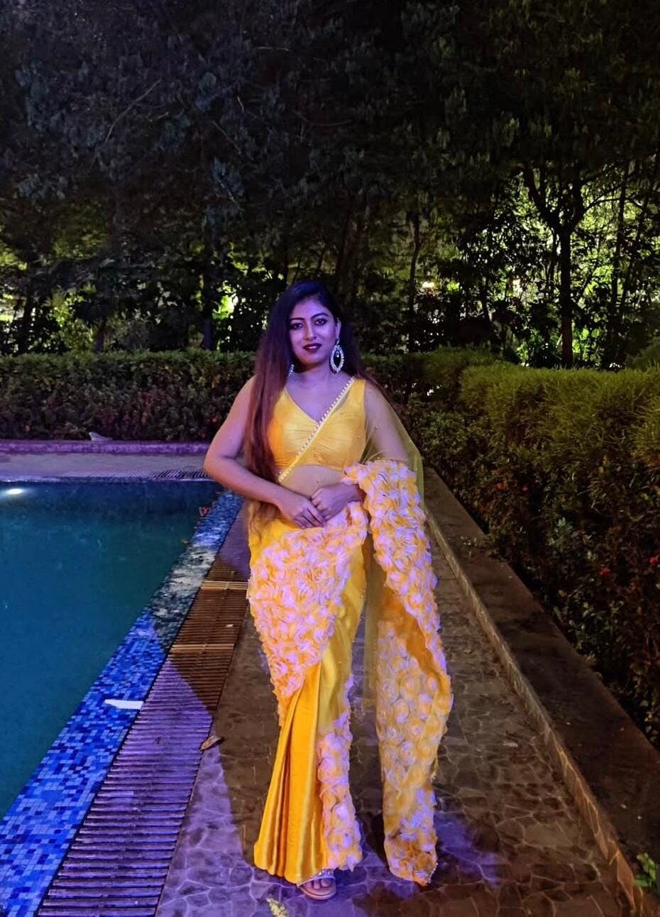 Stride the world in spectacular style with Kreation by KJ's Drama Queen Saree! This eye-catching design features yellow roses, guaranteed to make you the show stopper. Look like royalty and take your place on the throne of fashion with this daringly glamorous saree!